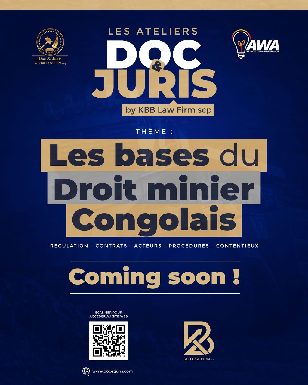 Retrouvez très bientôt Les ateliers Doc & Juris du cabinet KBB Law Firm SCP portant sur les bases du droit minier congolais.