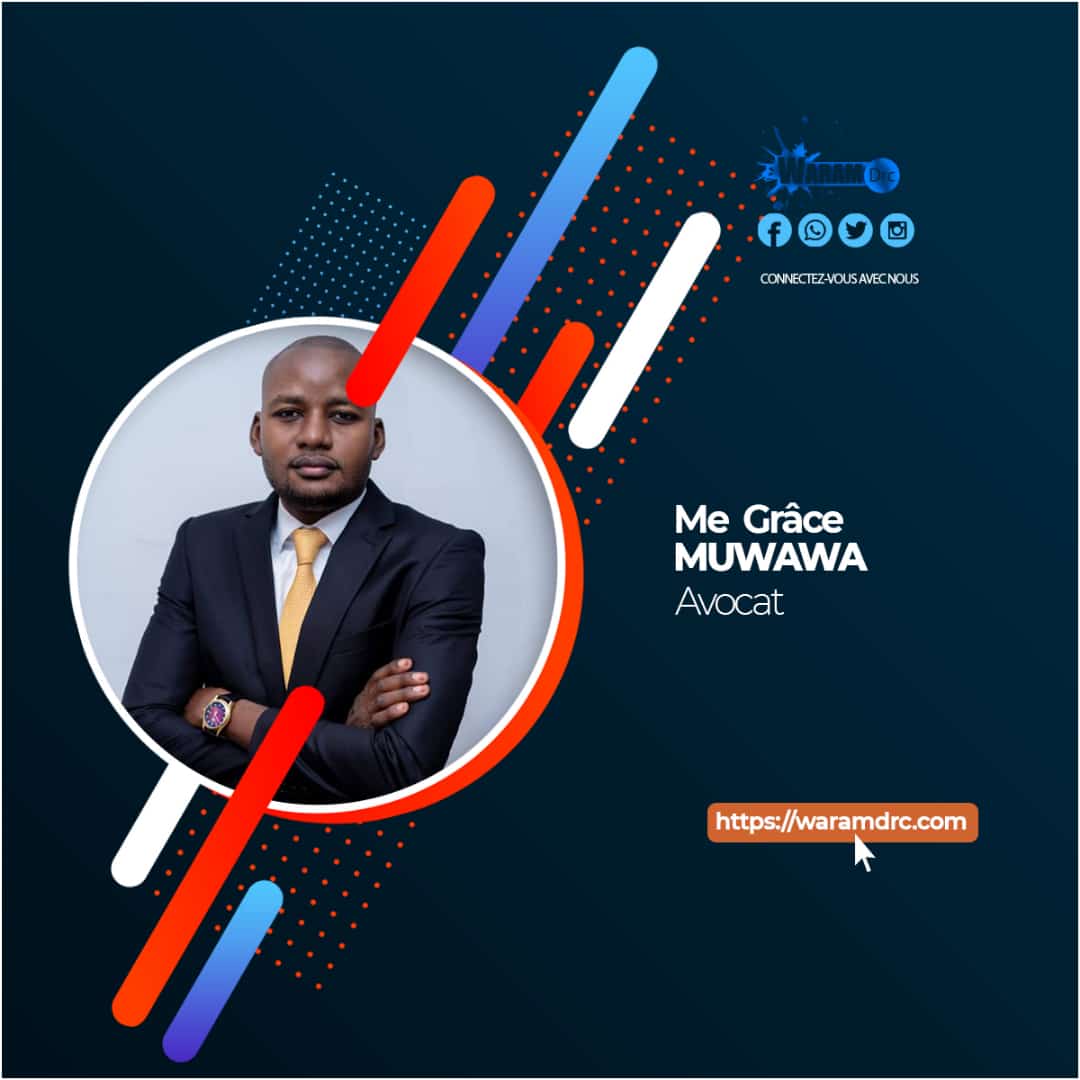 Grace Muwawa Luwungi. est Avocat au Barreau de Kinshasa/Matete depuis le 11 avril 2015, après avoir presté entre 2012 et 2015 comme défenseur judiciaire près les tribunaux de grande instance de Kinshasa/Gombe et de Kinshasa/Matete. Il a passé son stage professionnel d’avocat sous l’encadrement des Maîtres Gaston Kabwa Kabwe et Bia Buetusiwa au Cabinet Lukombe Nghenda, et est actuellement membre du Cabinet OVK Law firm. Assistant à la Faculté de Droit, il est Diplômé d’Etudes Supérieures (Bac +7) en Droit Économique et Social de l’Université de Kinshasa, et actuellement admis en thèse en droit dans la même université. Il est auteur d’une dizaine de publications scientifiques dans les domaines du droit du travail, du droit judiciaire et du droit des affaires OHADA. Rédacteur en Chef et Secrétaire Exécutif de la Revue scientifique Doc&Juris, il est depuis janvier 2019 expert international certifié en droit du travail, expert en droit de recouvrement des créances, Conférencier international, Formateur, Facilitateur, Consultant juridique à Actualité.cd. Il a plusieurs fois animé des conférences internationales et dirigé des séminaires avec des professionnels de droit des entreprises publiques et privées en Afrique et en Asie.